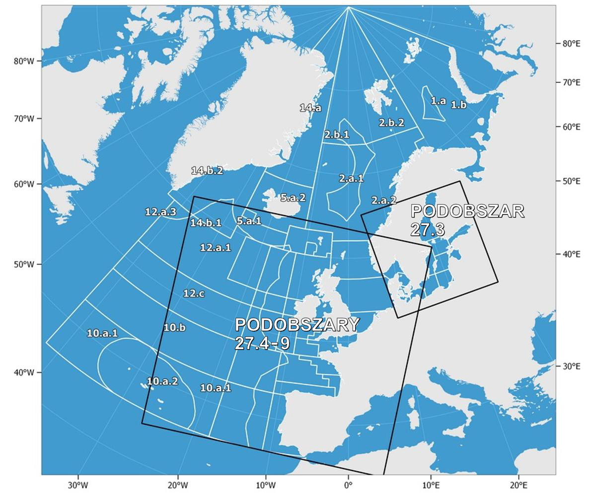 - FAO 27.3: Skagerrak, Kattegat, Sund, Morze Bełtów i Morze Bałtyckie