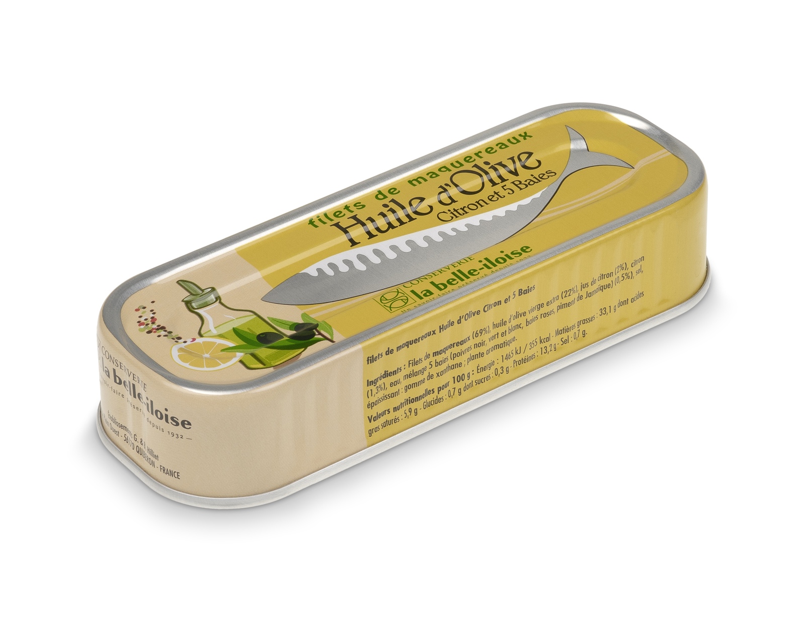 Filety z makreli przygotowywane zgodnie z tradycyjnymi metodami stosowanymi w La Belle-Iloise, pokryte delikatnie pachnącą oliwą i doprawione nutą cytryny. To wszystko, czego potrzebują użyte tu rodzaje pieprzu. Wspaniała uczta!