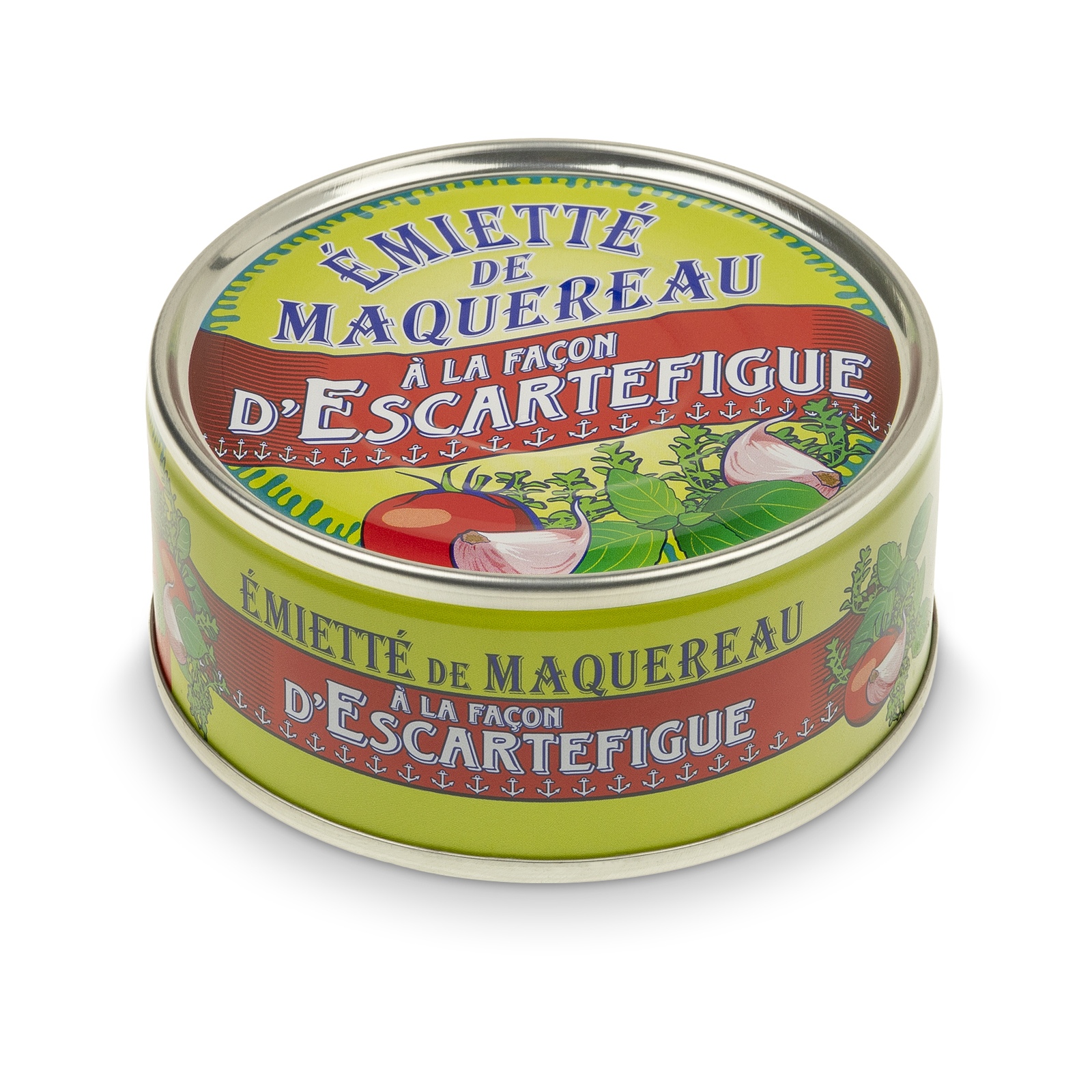Skład: Filety z makreli [ryba] (51%), oliwa extra virgin, pomidory (9%), cebula, białe wino (siarczyny), ocet spirytusowy, zioła (2%) w tym czosnek (0,8%), skrobia z tapioki, proszek z pomidorów, sól, cukier, przyprawy.