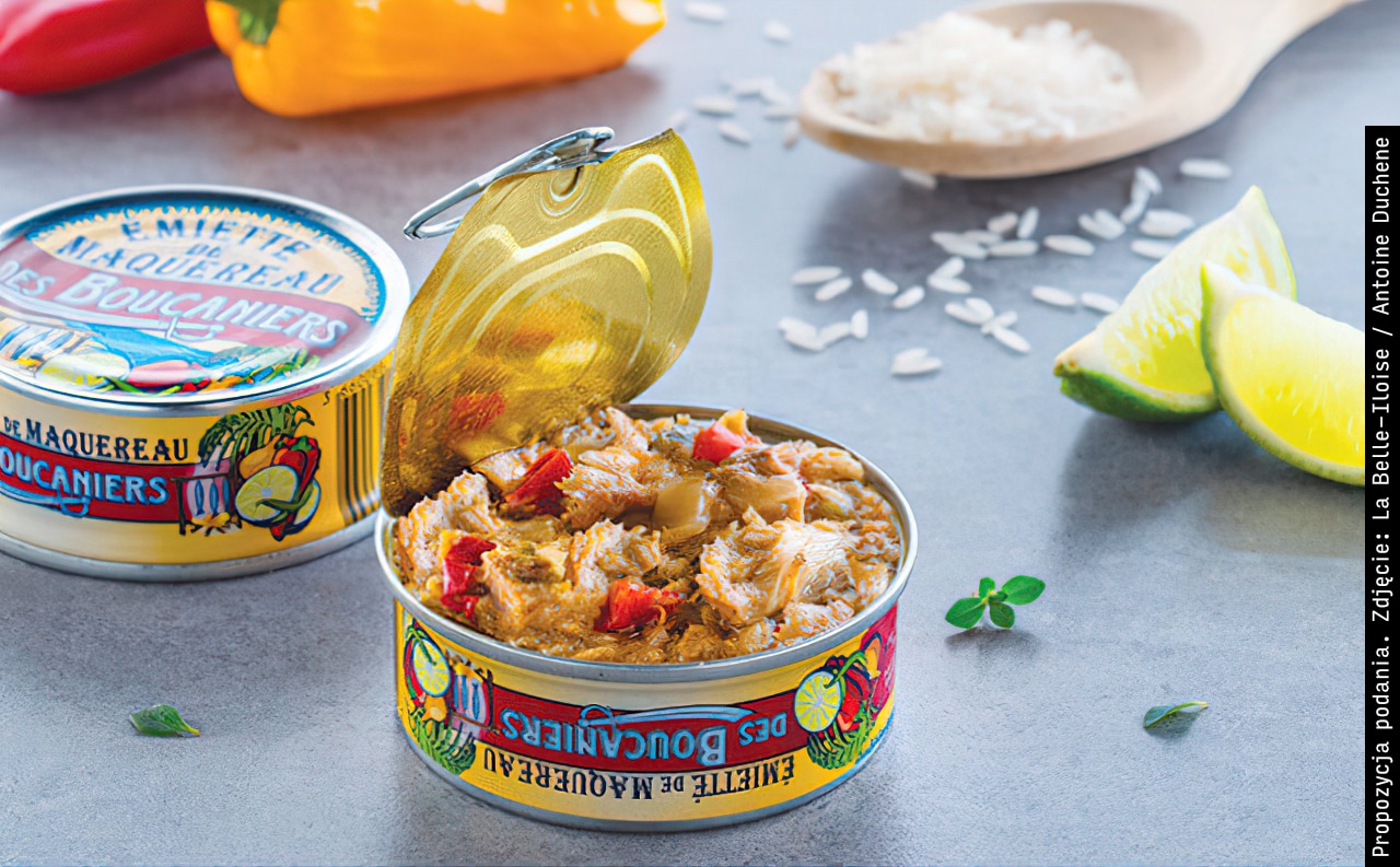 Skład: Filety z makreli (48%), olej słonecznikowy, cebula (10%), papryka czerwona (6%), sok cytrynowy (4%), czosnek dęty, woda, skrobia z tapioki, prażona cebula (1,1%), czosnek, sól wędzona (0,6%), przyprawy (seler, musztarda), zielona papryka (0,1%), sól.
