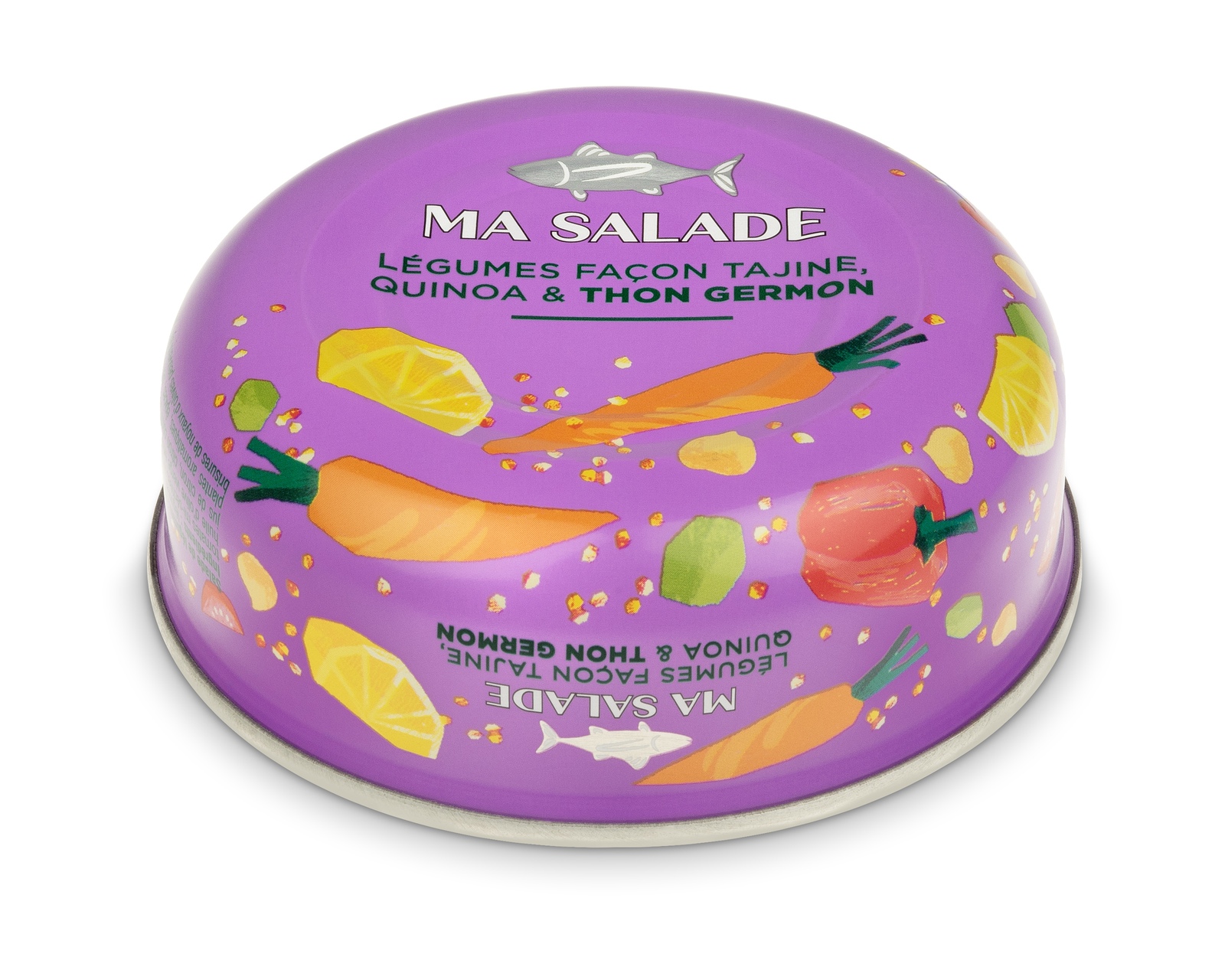 Skład: Warzywa (34%) (marchew (17%), czerwone papryki smażone (9%), pomidory półsuszone (4%), ciecierzyca (3%)), woda, tuńczyk biały (18%), oliwa z oliwek extra virgin, komosa biała i czerwona (6,8%), zielone oliwki (4,5%), sok z cytryny, cytryna kandyzowana w soli (siarczyny) (2%), skrobia ziemniaczana, zioła, przyprawy, sól.