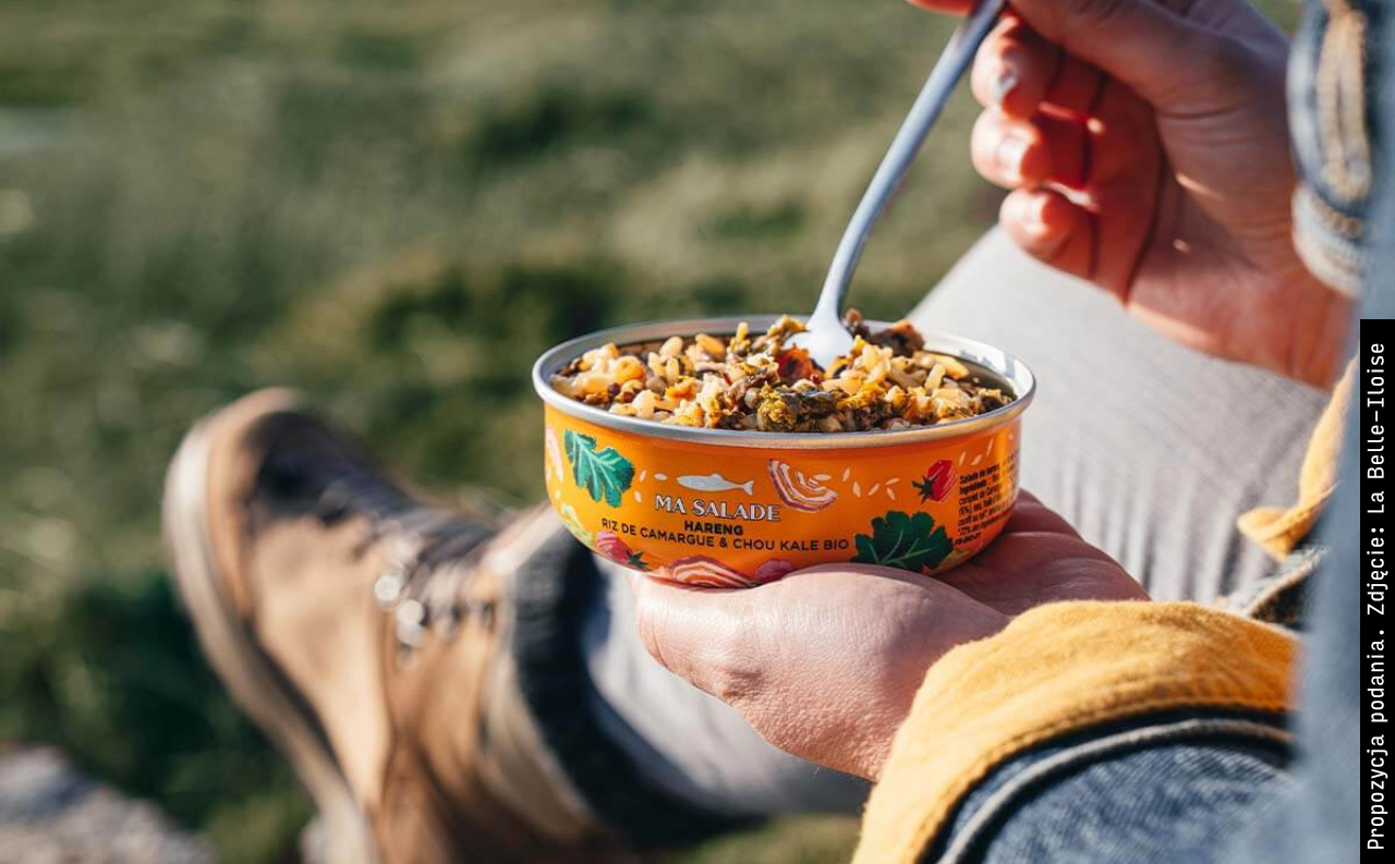 Skład: Filety ze śledzia (26%), pomidory koktajlowe (18%), pełnoziarnisty długi ryż z Camargue (13%), cebula (10%), jarmuż (9%), wodorosty wakame (6%), woda, oliwa extra virgin, sok z cytryny, nasiona brązowego lnu, cytryna konserwowa w soli, skrobia ryżowa, sól wędzona, zioła, pieprz.
