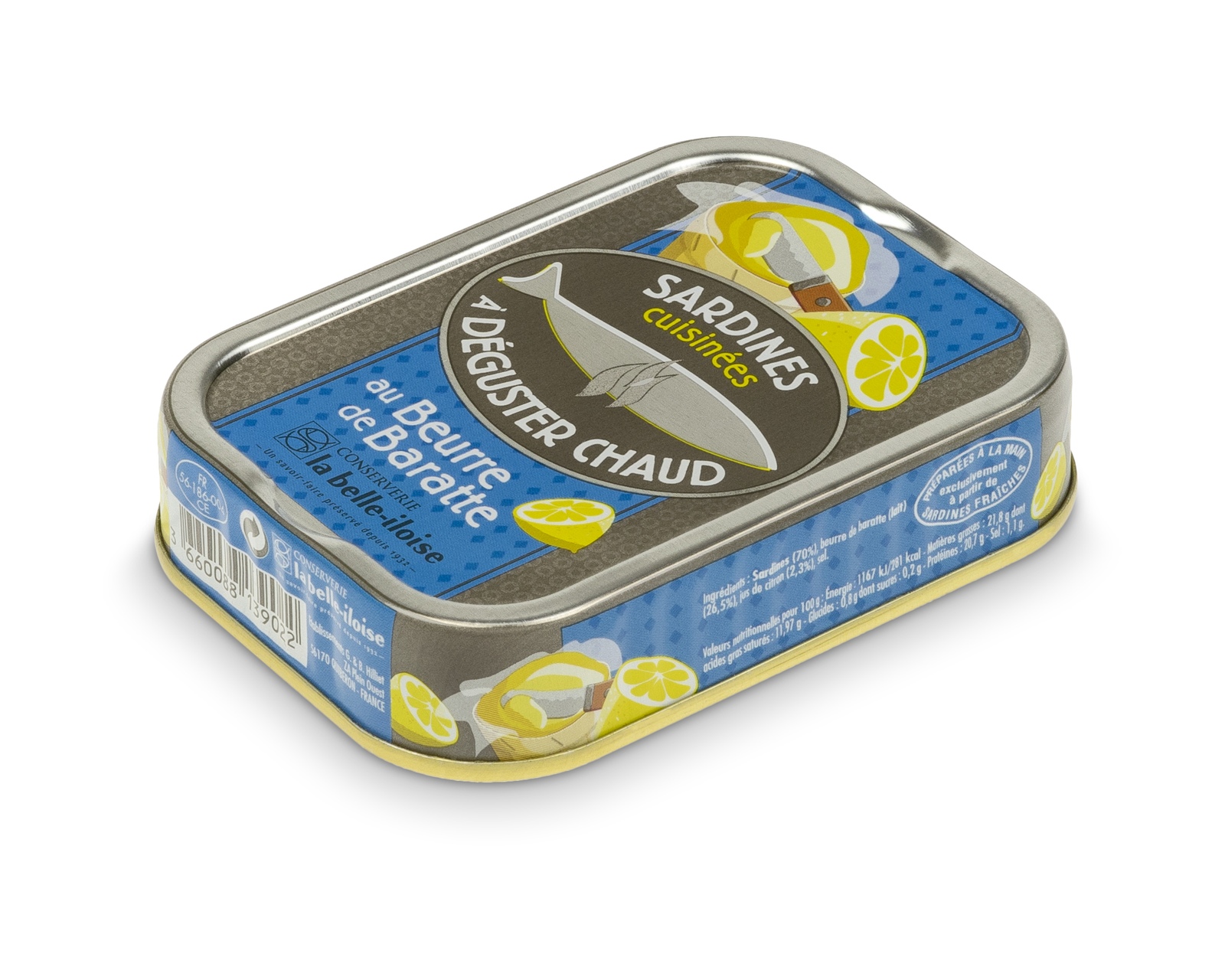 Nazwa oryginalna: Sardines cuisinées à déguster chaud au berre de baratte.