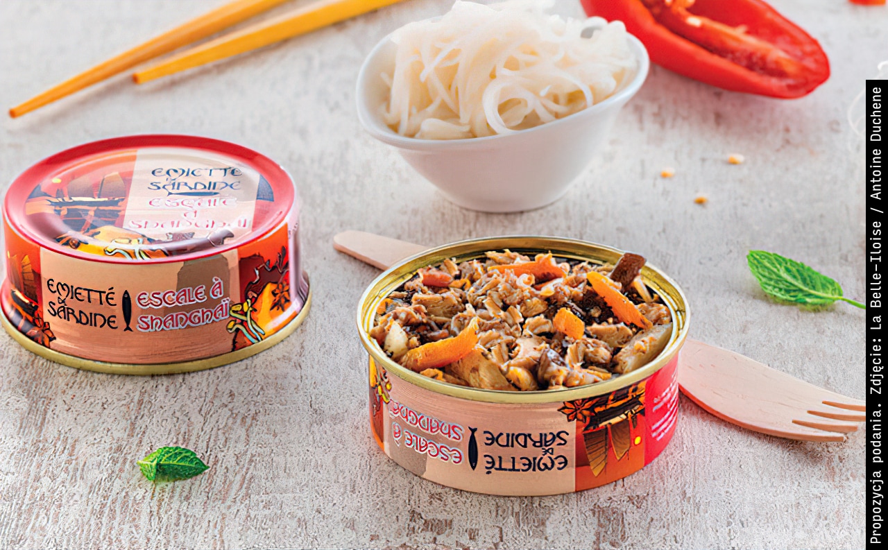 Kompozycja delikatna i aromatyczna, oferuje fuzję świeżych i egzotycznych smaków. Azjatycka podróż z sardynkami inspirowanymi Dalekim Wschodem. Delikatnie pokruszone sardynki są gotowane z orzechami wodnymi, marchewką, cebulą, kiełkami fasoli mung, czarnymi grzybami i grzybami shiitake, całość wzbogacona sosem nuoc mam i nutą anyżu gwiaździstego. Endemiczny dla Chin anyż gwiaździsty, zwany również badianem, jest rozpoznawalny dzięki swojemu kształtowi ośmioramiennej gwiazdy. Został po raz pierwszy sprowadzony do Europy przez Marco Polo. Przyprawa jest bardzo aromatyczna, ale pełna łagodności. Dodaje nut anyżowych, drzewnych i słodkich, typowych dla kuchni chińskiej. Do spożycia na zimno lub ciepło, sardynki po szanaghajsku smakują doskonale na tostach jako przekąska czy z ryżem lub azjatyckimi makaronami jako danie główne. Są także pyszne w sałatce z warzywami po wietnamsku czy w sajgonkach.