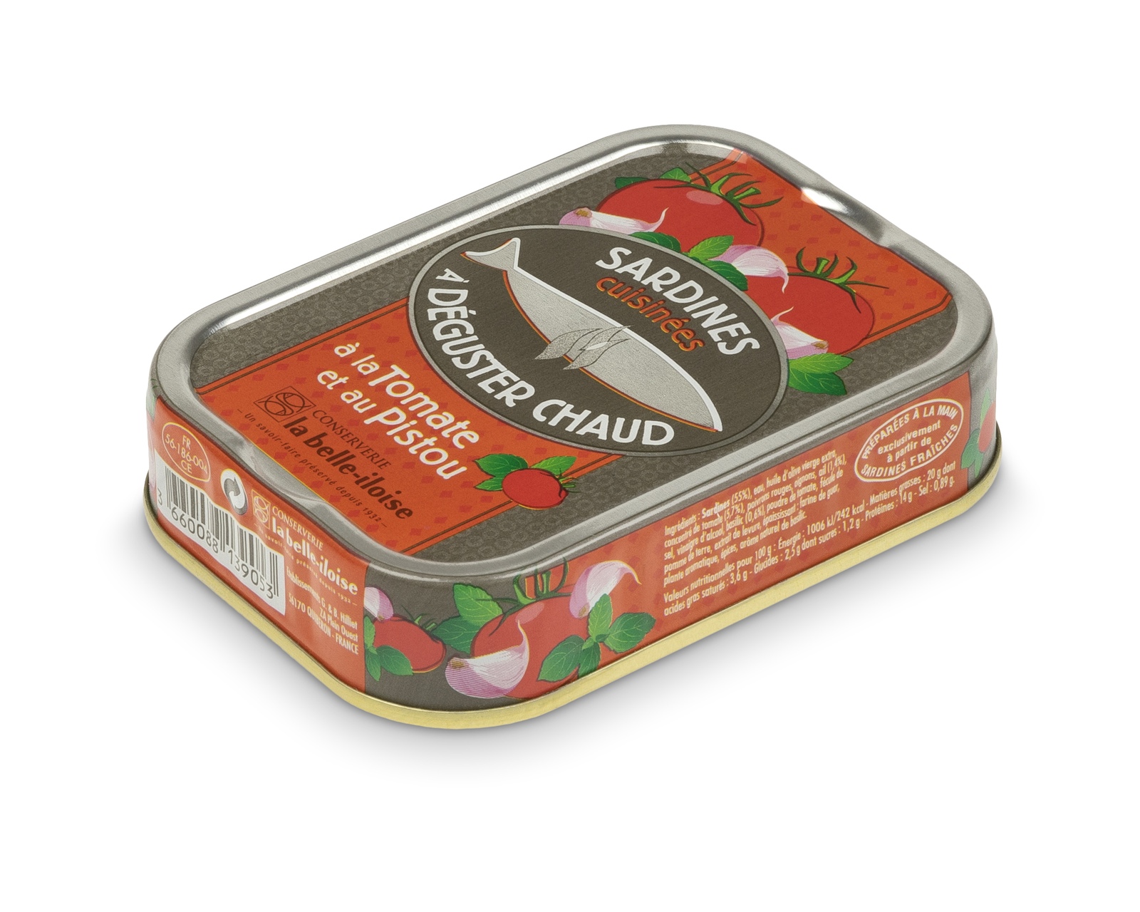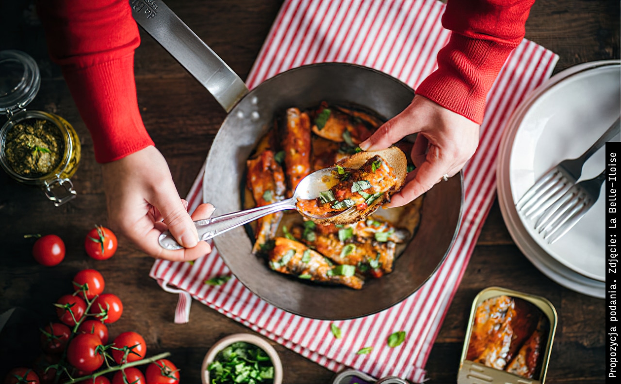 Nazwa oryginalna: Sardines cuisinées à déguster chaud à la tomate et au pistou.