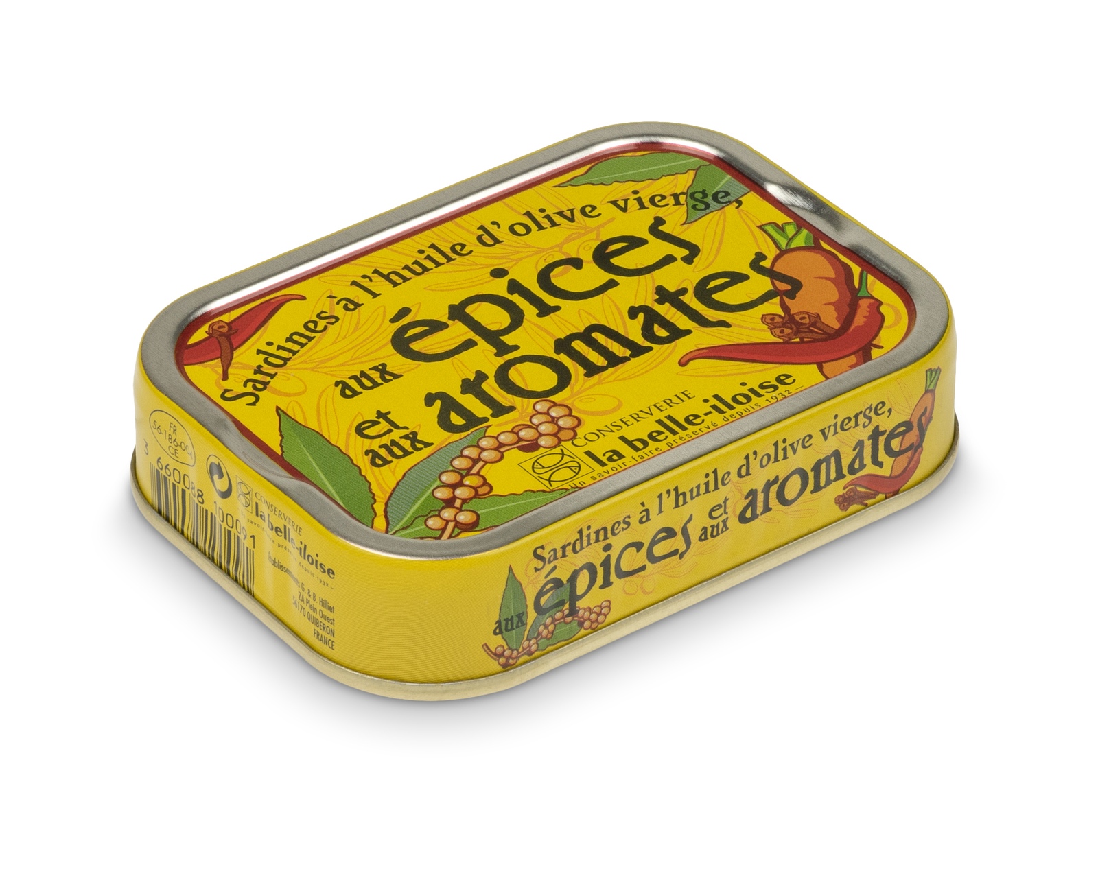 Skład: Sardynki, oliwa extra virgin (21%), aromaty (4.4%) (korniszony (siarczyny), marchew, liść laurowy), sól, przyprawy (0,3%) (pieprz cayenne (0,06%), pieprz biały, goździk (0,06%)).