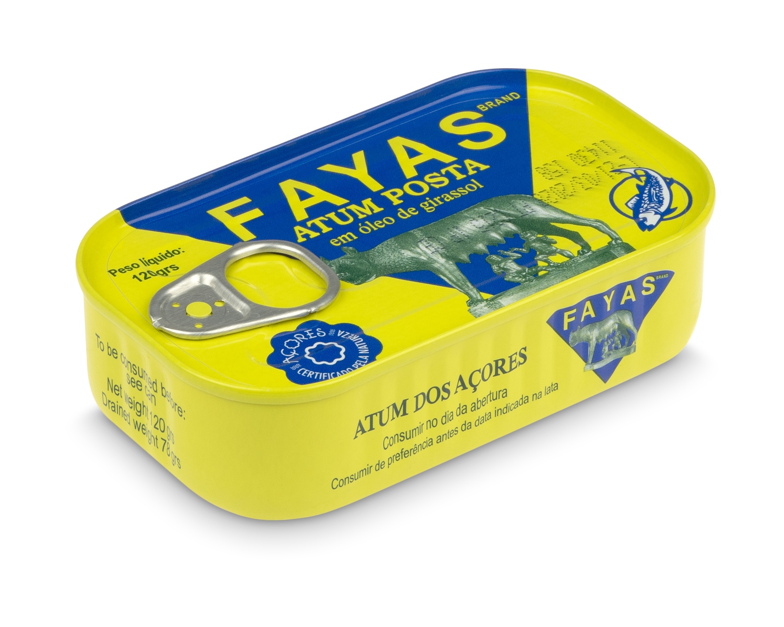 Tuńczyk łowiony w czystych oceanicznych wodach wokół Azorów. Zanurzony w oleju słonecznikowym bogatym w witaminę E.