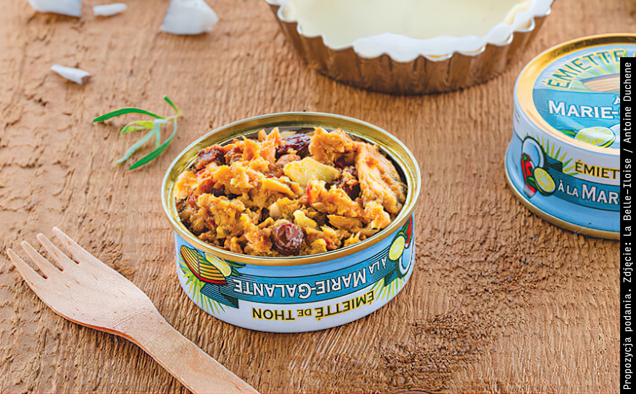Rozdrobnionego ręcznie tuńczyka łączy się z kokosem, papryką, limonką i kreolską mieszanką przypraw Colombo, które to przyprawy idealnie przenikają kawałki ryby.